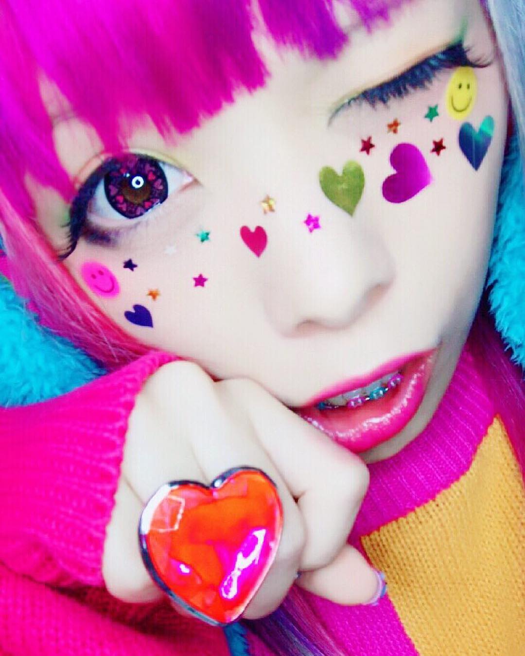 「私が小中学生の頃はギャルが流行っていて、私もみんなと同じようにギャルを目指していました。ケバいメイクに短いスカート、露出度の高い服、そんなファッションに溢れていた時代に、偶然友達が読んでいた『KERA』という雑誌を読んで衝撃を受けました」そう語った同雑誌の読者モデルとして活躍する紅林大空 (@kurebayashiii) さんも、今では頭からつま先までビビッドな色の「デコラ」スタイルを着こなす。「原宿系という括りの中にもサイバー、フェアリー、パンク、ロリータなど様々なファッションに身を包んだ人がたくさん載っていて、そこで初めて、自分が想像していたよりもファッションは自由であることを知りました」ファッションは一番外側にある内面だと言う彼女がシェアする写真や動画は、まさにありのままの自分を伝える手段の一つ。「私のカラフルな投稿でハッピーな気持ちになってほしいです。個性とは、誰かと違う事ではなく、自分らしくあるということだと思うんです」