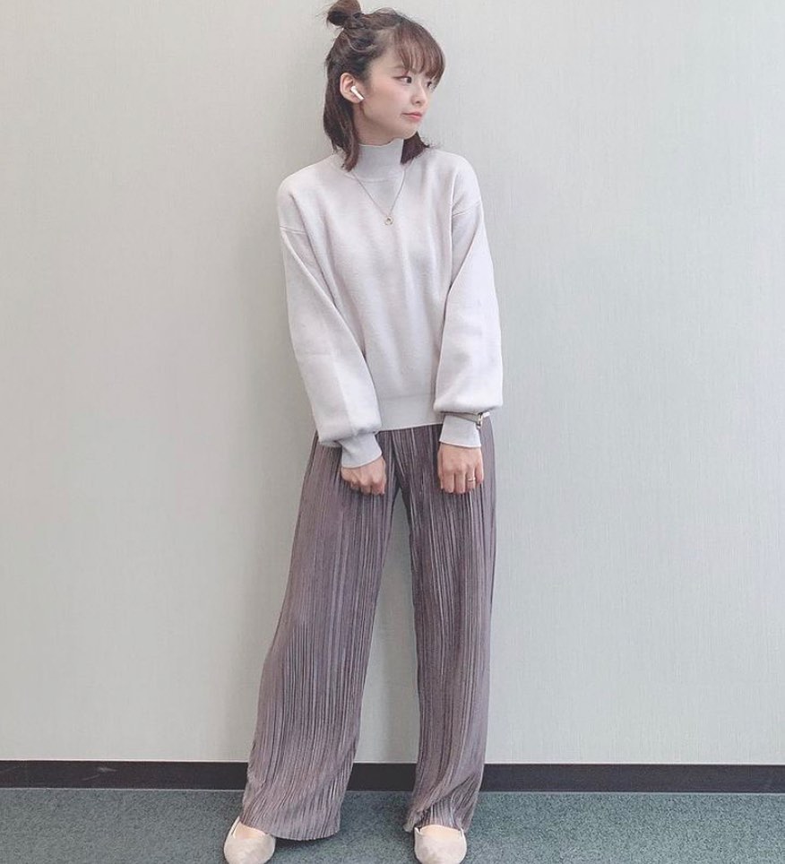 スウェットライクハイネックセーターコーデをPick up!