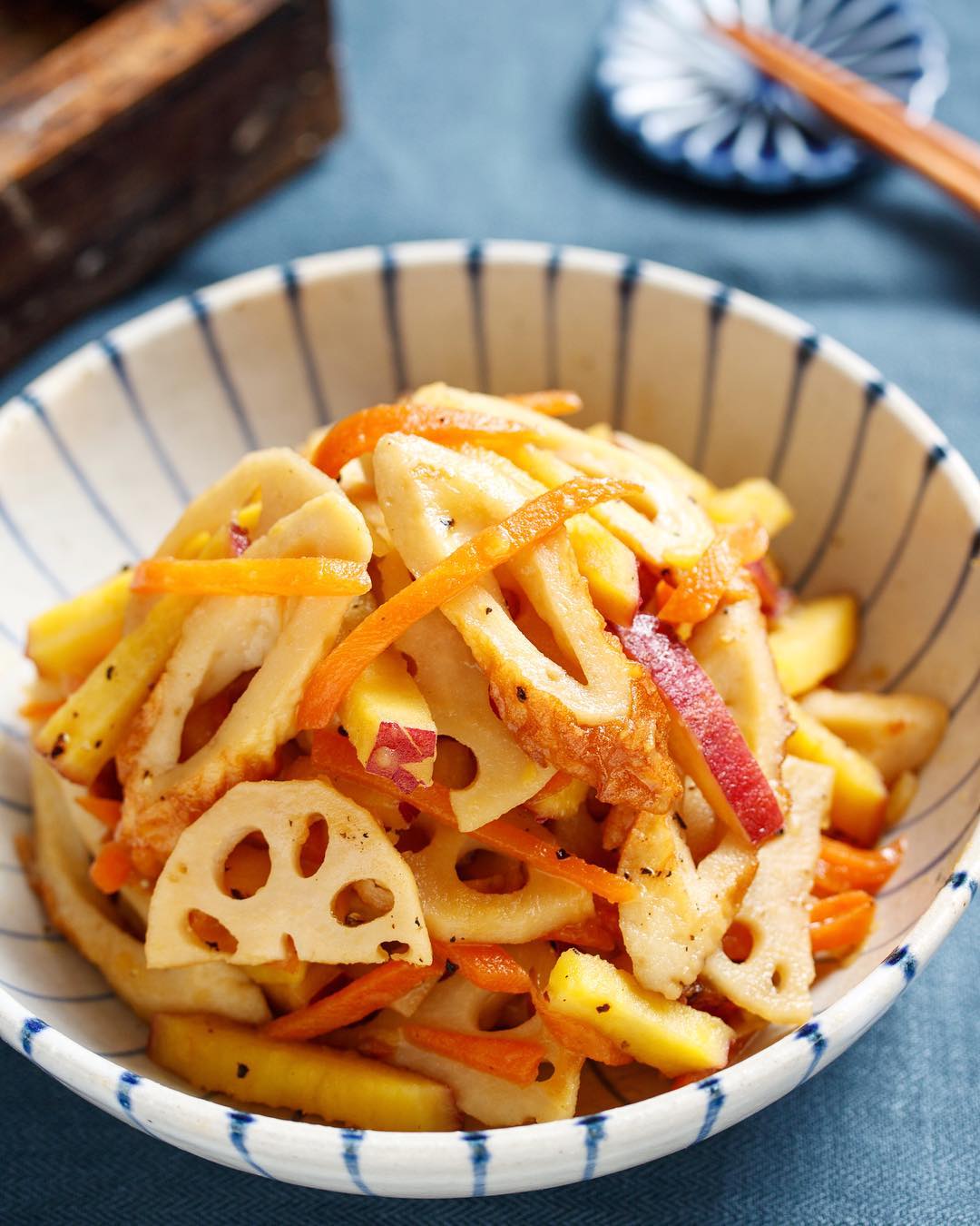 #簡単 #簡単レシピ #レシピ #節約 #時短 #時短レシピ #作り置き #お弁当 #food #recipe #cooking #料理好きな人と繋がりたい #器好き #器 #写真好き #楽うま #おかず #自分時間 #自分磨き #自分らしく #さつまいも #れんこん #にんじん #きんぴら #バター醤油 #一正蒲鉾 #nadiaレシピ