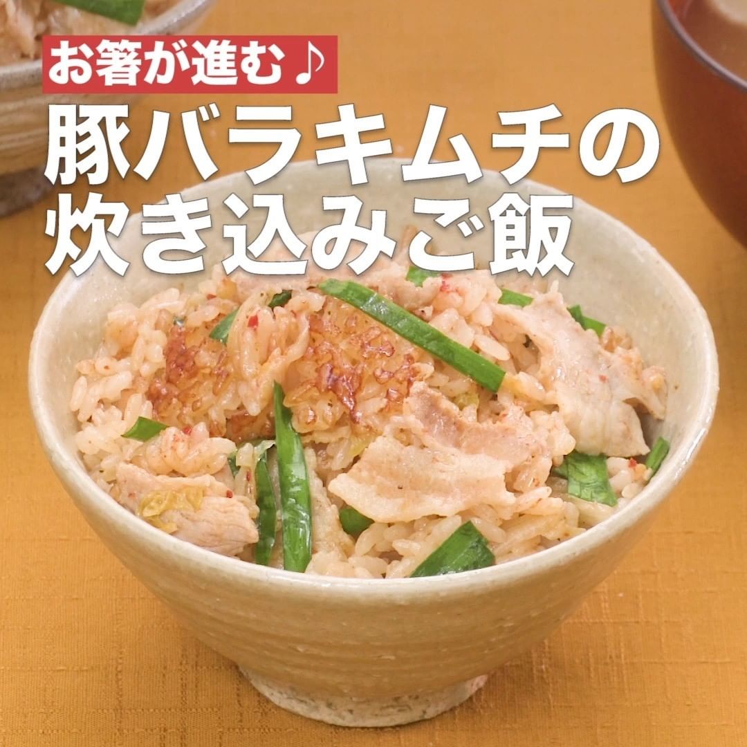 ①<お箸が進む♪豚バラキムチの炊き込みご飯>