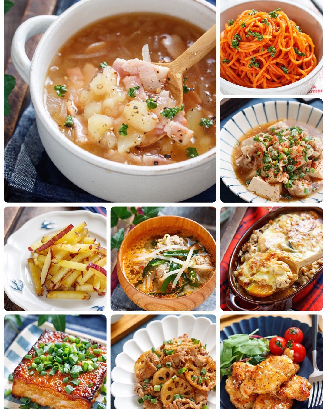 主菜・副菜・スープ・主食・おつまみごとに