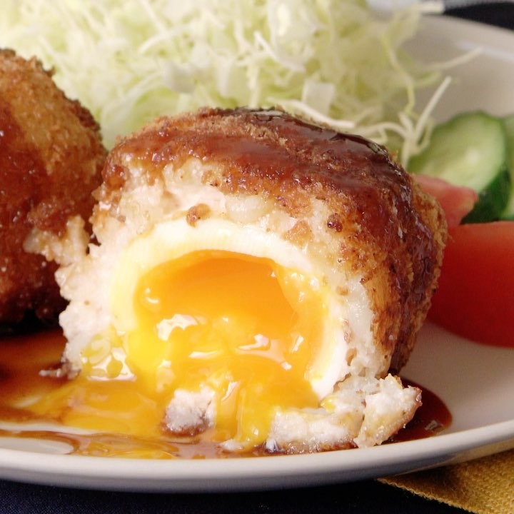 【コンビニのポテサラで】タラモサラダ風とろとろ半熟卵コロッケ🍳