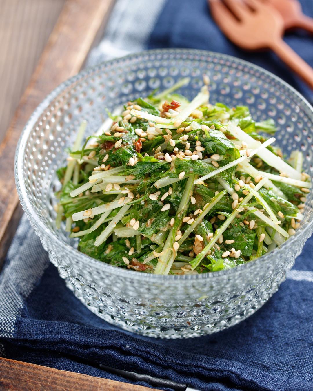 【ふりふり♪無限♡水菜のごまおかかナムル】#作り置き #時短 #包丁不要 #ポリ袋 #ポリめし #洗い物不要 #やみつき #おつまみ #副菜
