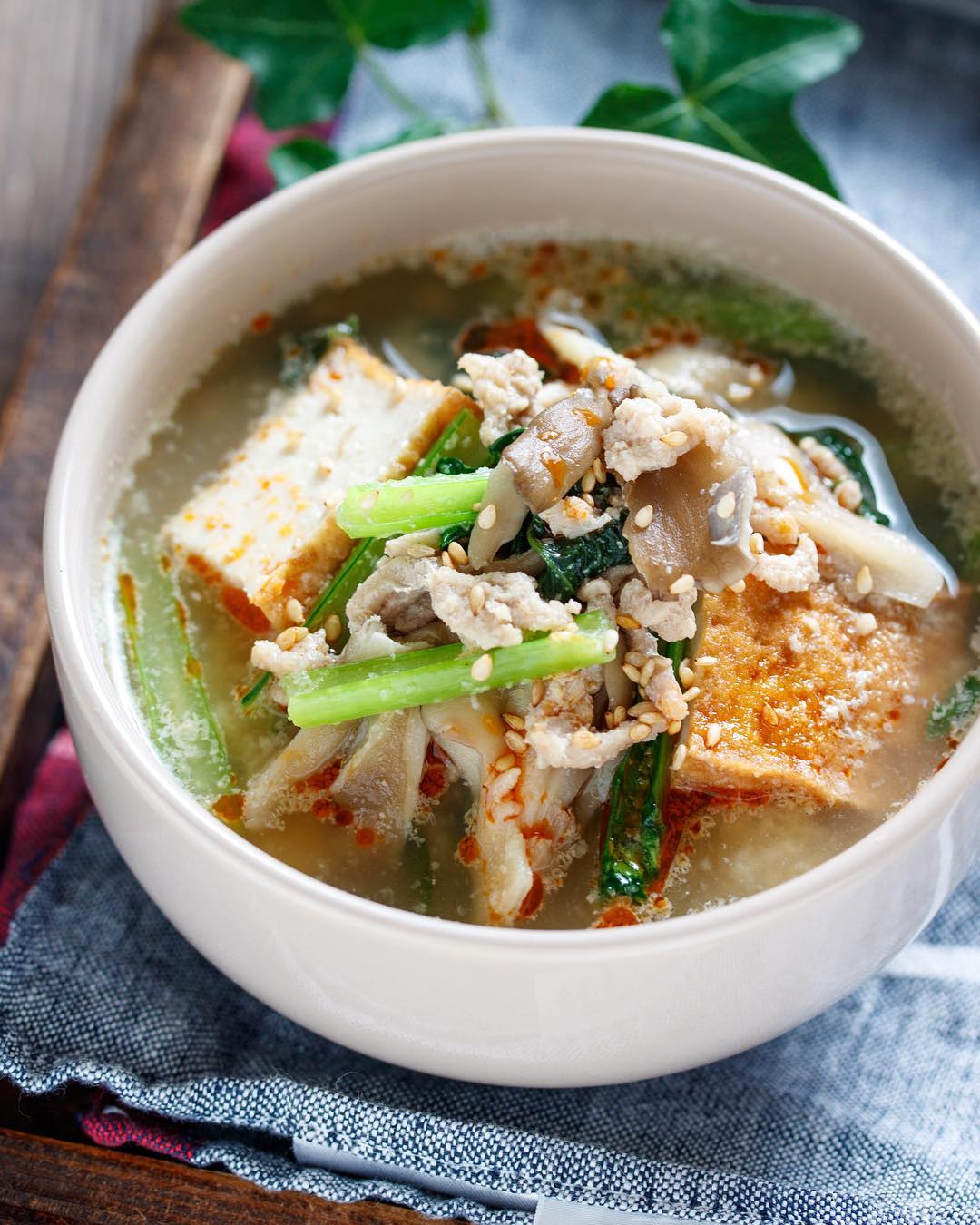 【厚揚げと小松菜と舞茸のごま味噌スープ】#時短 #包丁不要 #冷蔵庫のお掃除 #ダイエット #おかずスープ