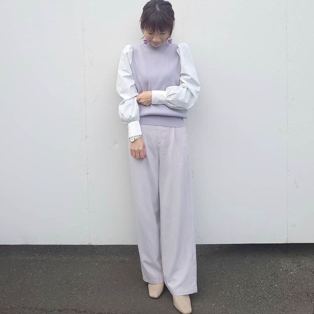 シャツスリーブコンビネーションセーターコーデをPick up!優しいカラーがフェミニンなセーターに、シャツスリーブがドッキング👍肩はパフスリーブになっていて、可愛さと上品さ、どちらも叶う優秀トップスですね😍女性らしい、トーンを揃えた着こなしが、とっても素敵です👏冬のお洒落アイテムとして、持っていたいセーターです🙌