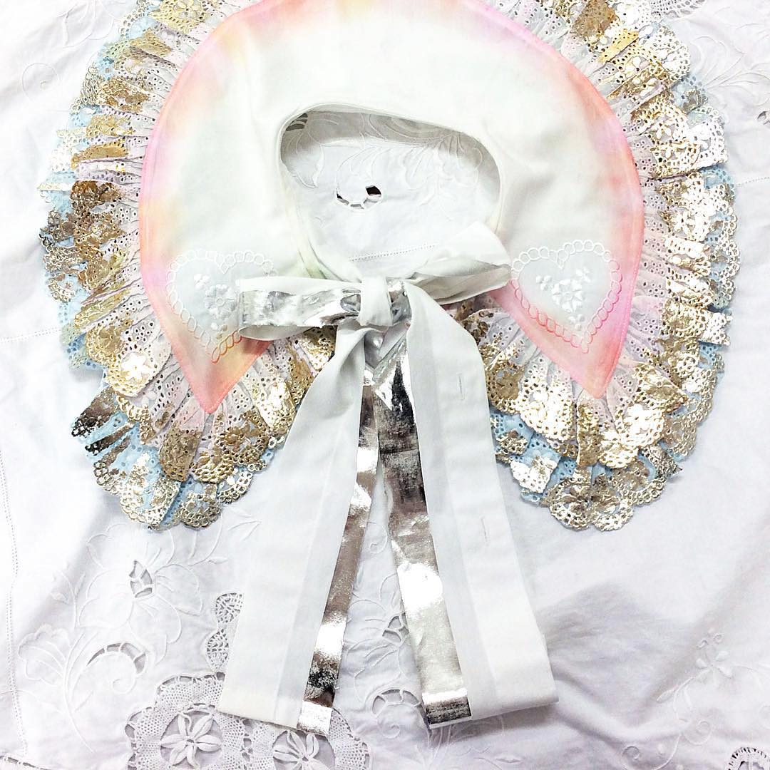 手作業の染色によるオリジナルのファッションアイテムの製作を始め、デザインや広告など幅広く手がける藤澤ゆき (@yuki__fujisawa) さん。彼女にとって、服にできてしまった穴や擦り切れは全てアイディアの出発点だ。国内外でヴィンテージ生地を調達し、独自のセンスで再利用しながら一点物の洋服を仕立てている。「生地の傷んだところを箔素材で隠すと、綺麗にリメイクできるんです」箔を貼り付ける前に生地を一点ずつ手染めするのも彼女のこだわり。「はかなくてうつろいやすい色を表現するために染料を使っています。光の具合で立体的に色が変化するような工夫を施すこともあります」
