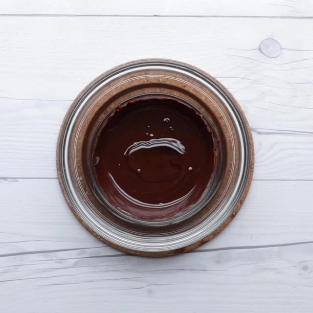 6.コーティング用のチョコレートを湯煎(45℃程度)にかけて溶かし、サラダ油を加えてなめらかになるまで混ぜる。