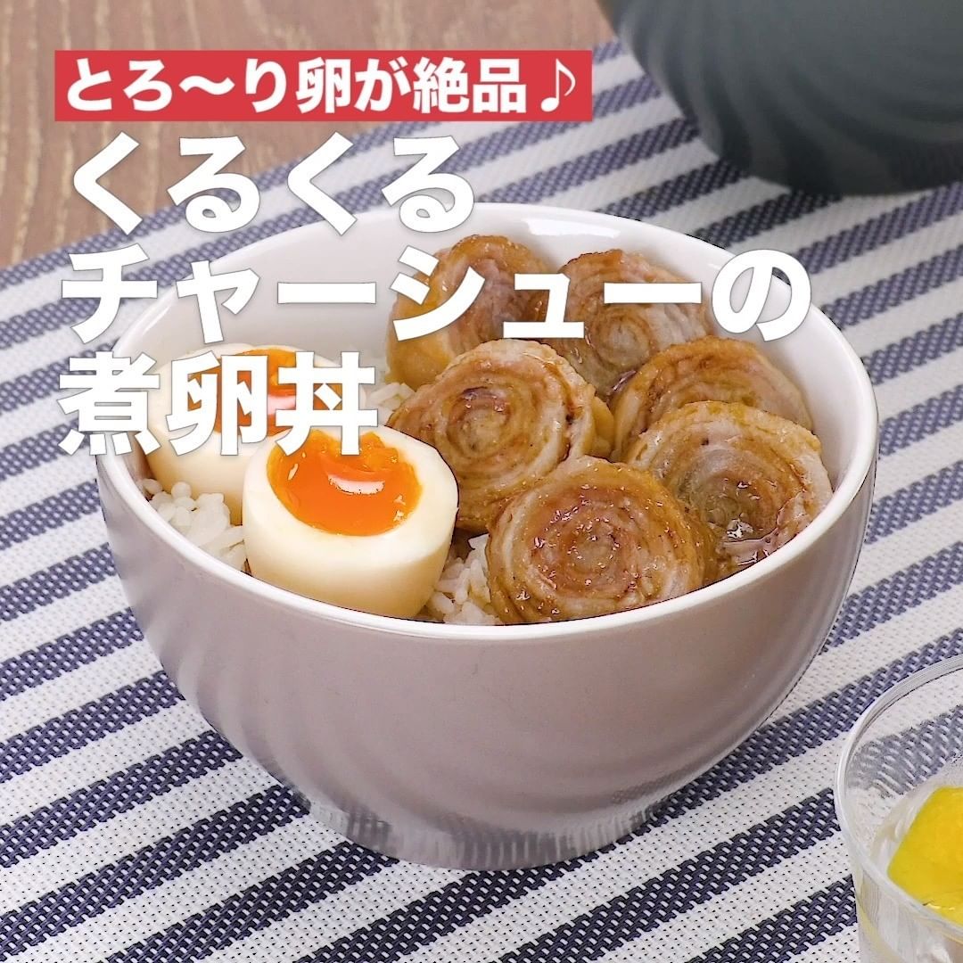 ③<とろ〜り卵が絶品♪くるくるチャーシューの煮卵丼>