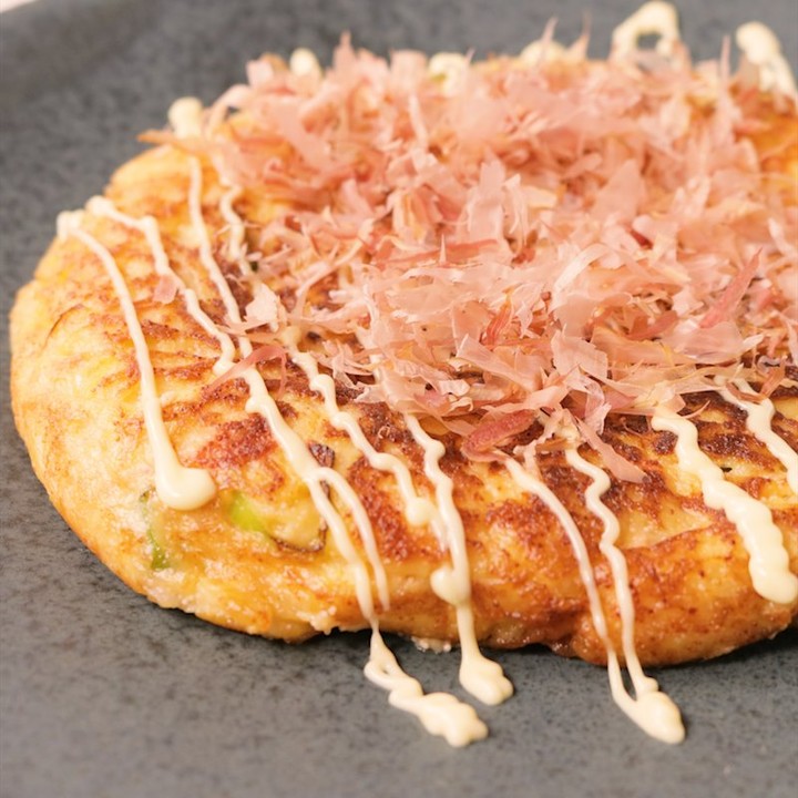 5. お皿に盛り付けて、マヨネーズとかつお節をかけ完成です。
