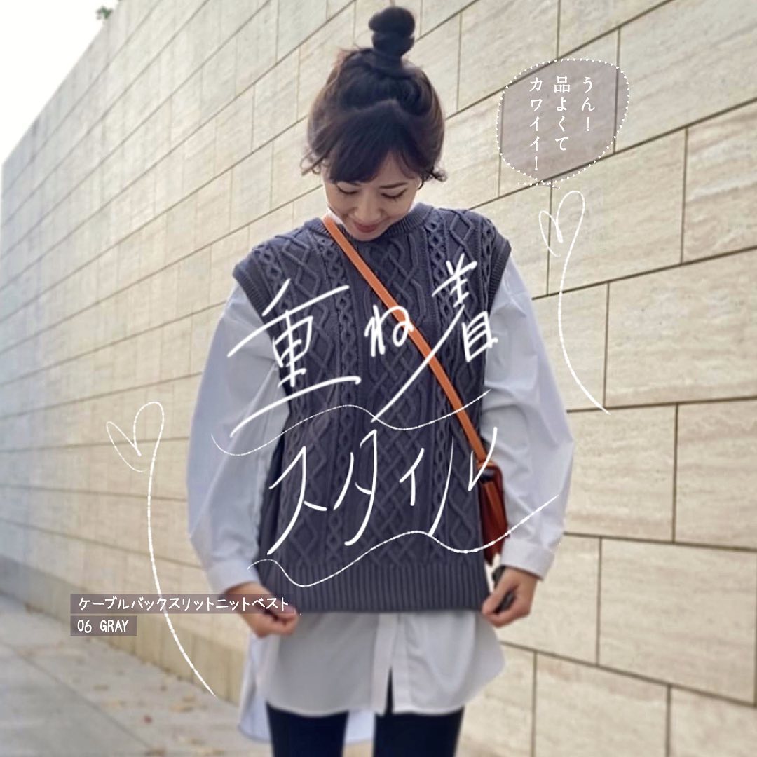 お洒落度UP✨重ね着スタイルに大注目😍人気のケーブル編みデザインのベストは🥰ブラウスやシャツに合わせると良い感じ👍ロング丈のTシャツは😘人気の裾出しスタイルに大活躍👏自分のスタイルに合わせて、着こなしのバリエーションを広げたいですね🙌是非、チェックしてみてくださいね💁♀️💕