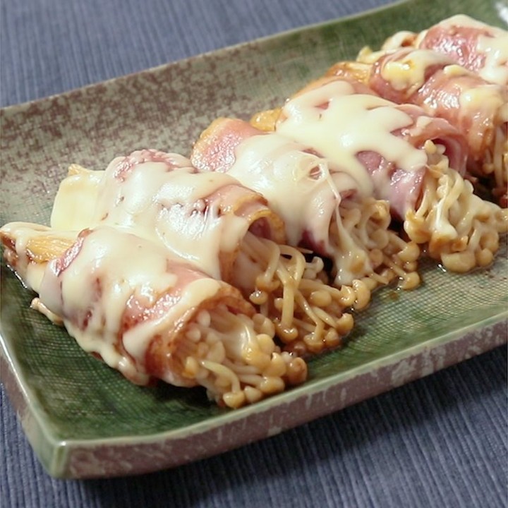 えのきのベーコン巻きレシピのご紹介です。チーズをのせて焼くことで、より美味しくなります。ベーコンとチーズの塩味が丁度よく、おつまみとしてもおすすめです。味付けはめんつゆのみなので、とても簡単です。ぜひお試しください。