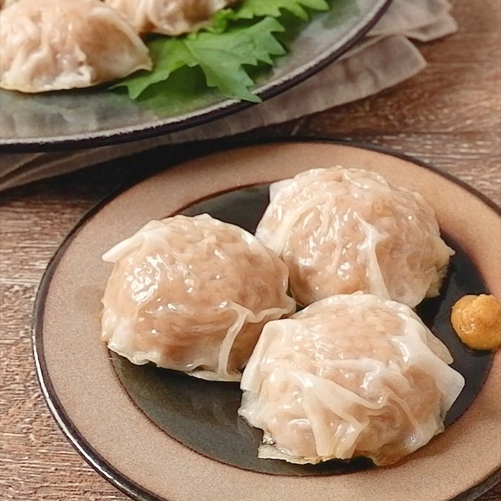 3. サラダ油をひいたフライパンに2を並べ、シュウマイの皮を包むようにのせ、中火で肉だねに焼き色がつくまで焼きます。