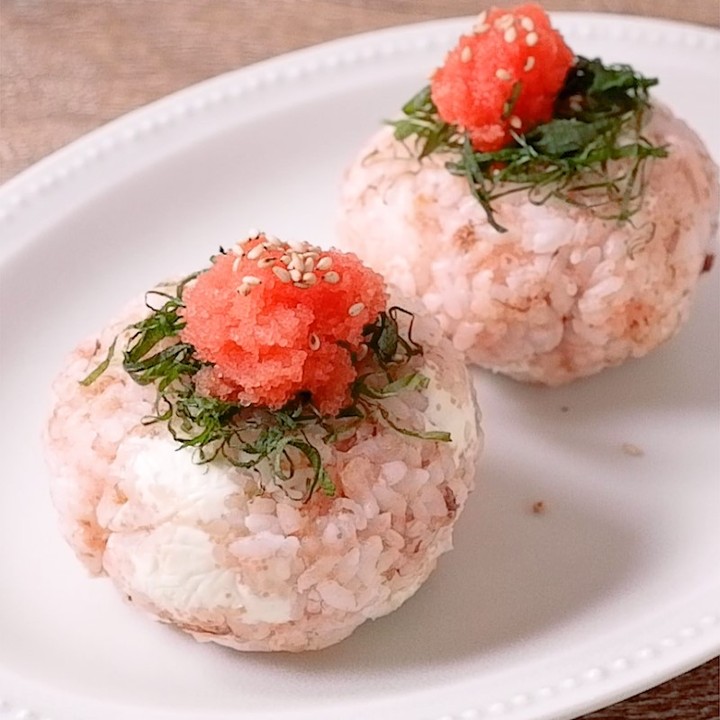 『クリームチーズと明太子のおかかおにぎり』