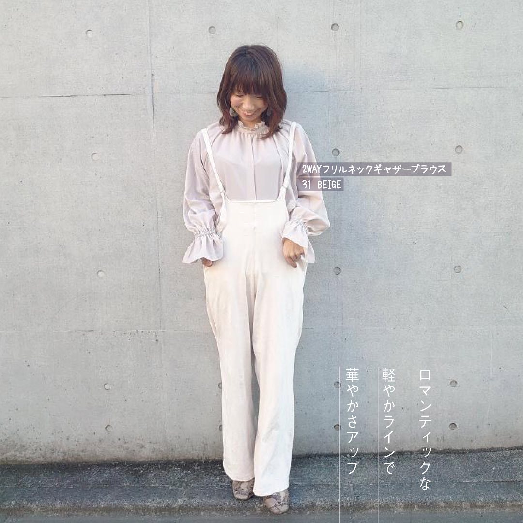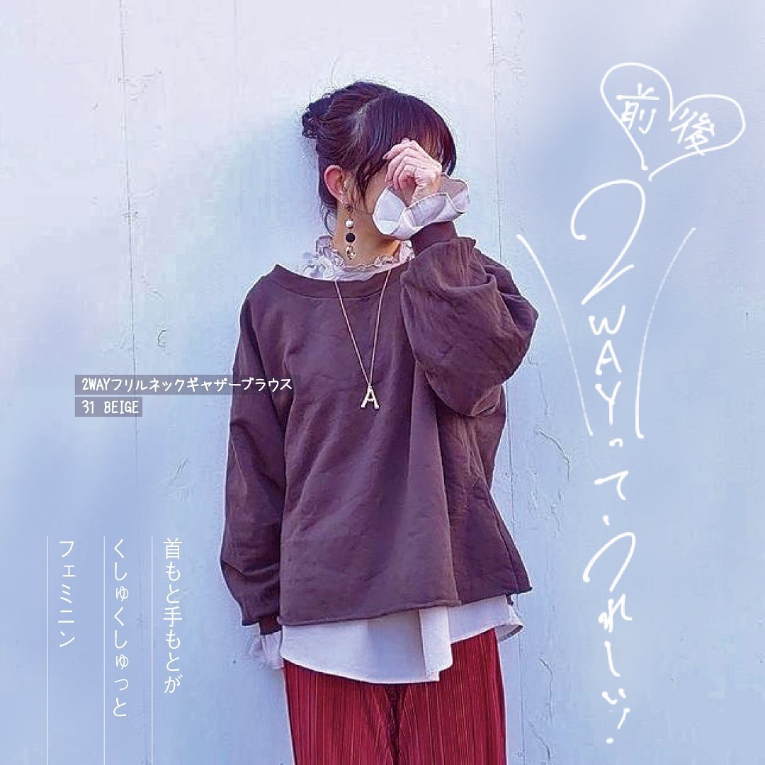 ☑︎2WAYフリルネックギャザーブラウス(長袖)