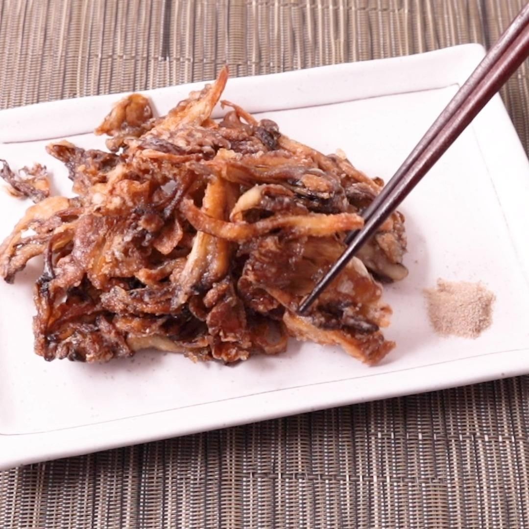 旨味たっぷりのまいたけを片栗粉をまぶしてカリカリに焼いた、やみつきになる事間違いなしの一品です。少ない材料でとっても手軽で簡単に作れるので、お昼ごはんや晩ごはんの食卓の一品やお酒のおつまみにもぴったりです。ぜひ作ってみてはいかがでしょうか。 .