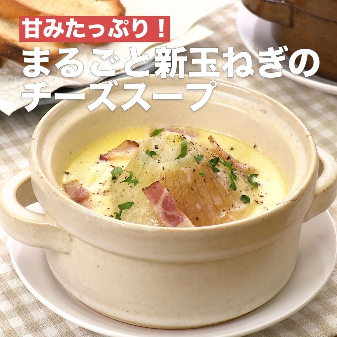 旬の新玉ねぎを丸ごと使った濃厚チーズスープを作ります♪新玉ねぎはじっくりと煮込んで、甘くトロトロに仕上げましょう。