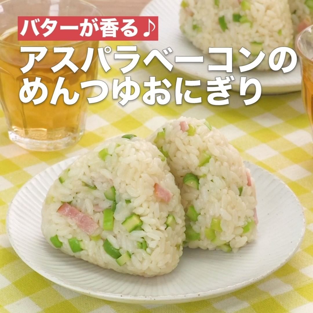 ③<バターが香る♪アスパラベーコンのめんつゆおにぎり>