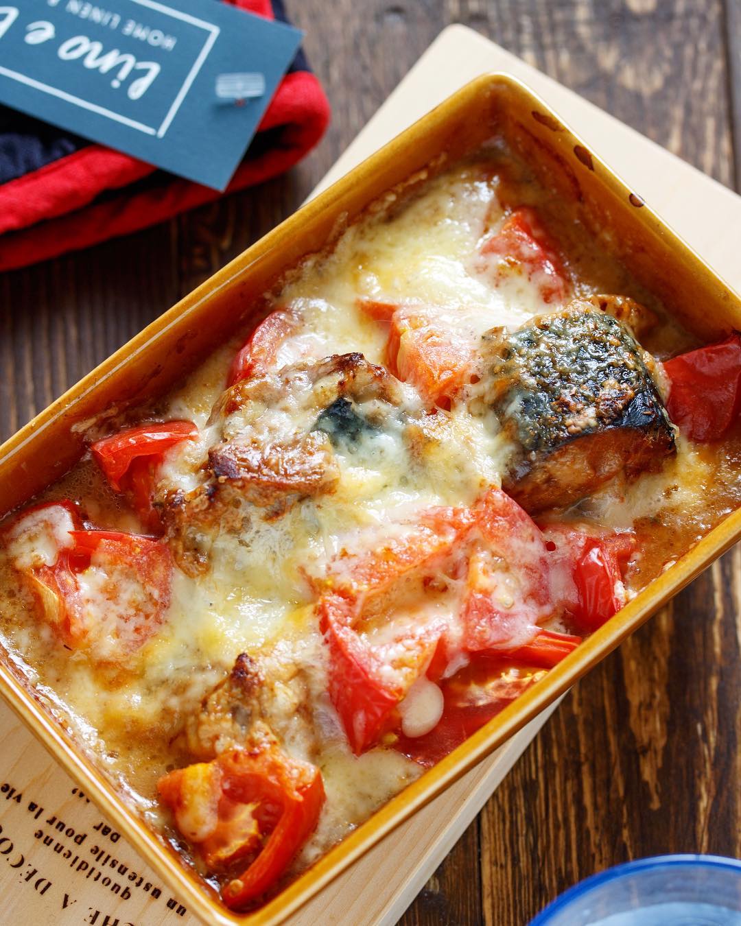 【乗せて焼くだけ♪ご飯もお酒もすすむ♪『サバ缶とトマトのマヨチーズ焼き』】