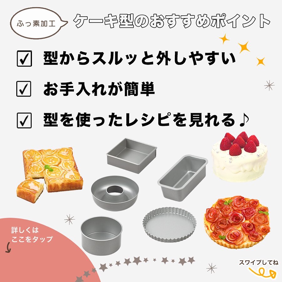 ケーキ型なら、生地をスルッと外せる【ふっ素加工】のケーキ型がおすすめ!😊