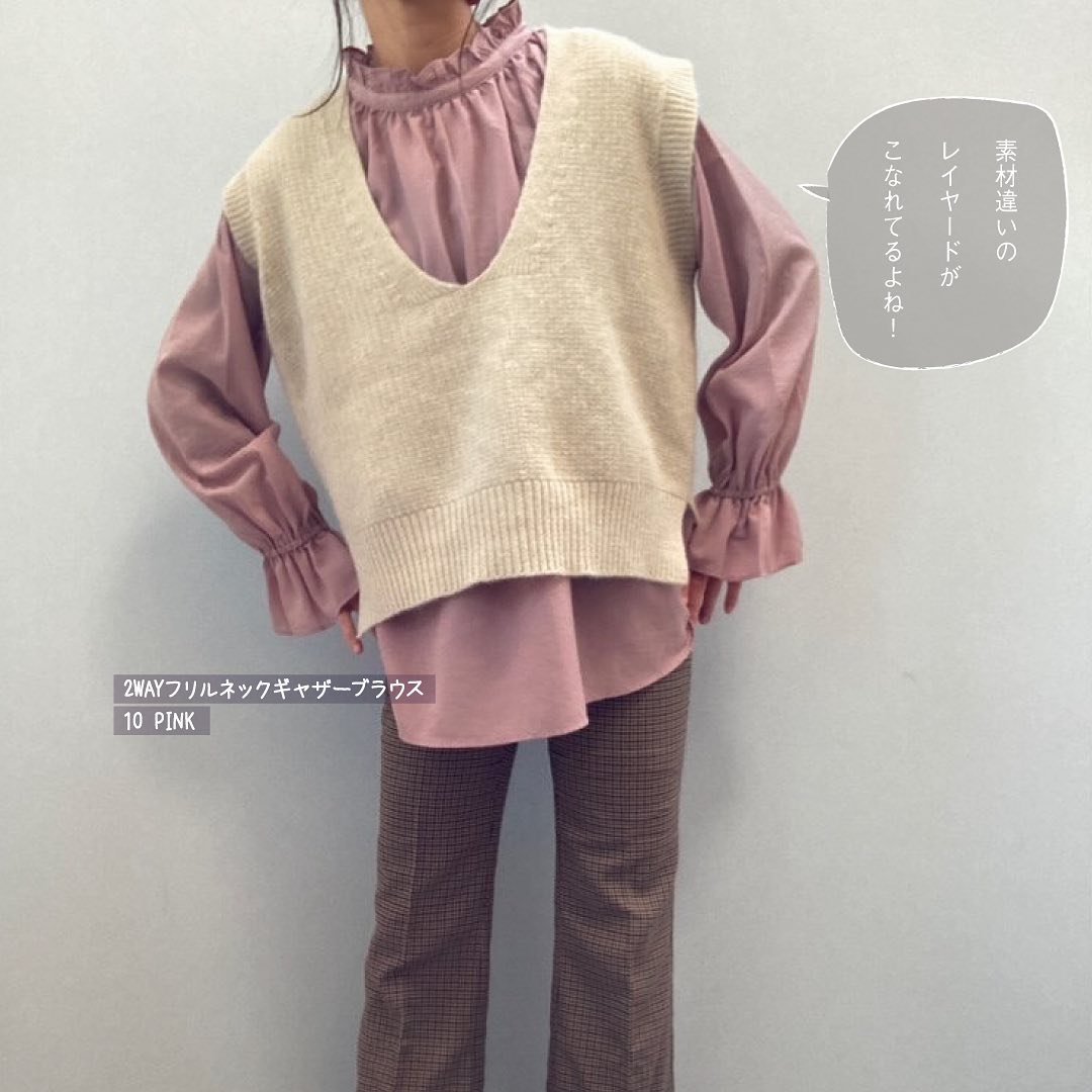 ☑︎2WAYフリルネックギャザーブラウス(長袖)