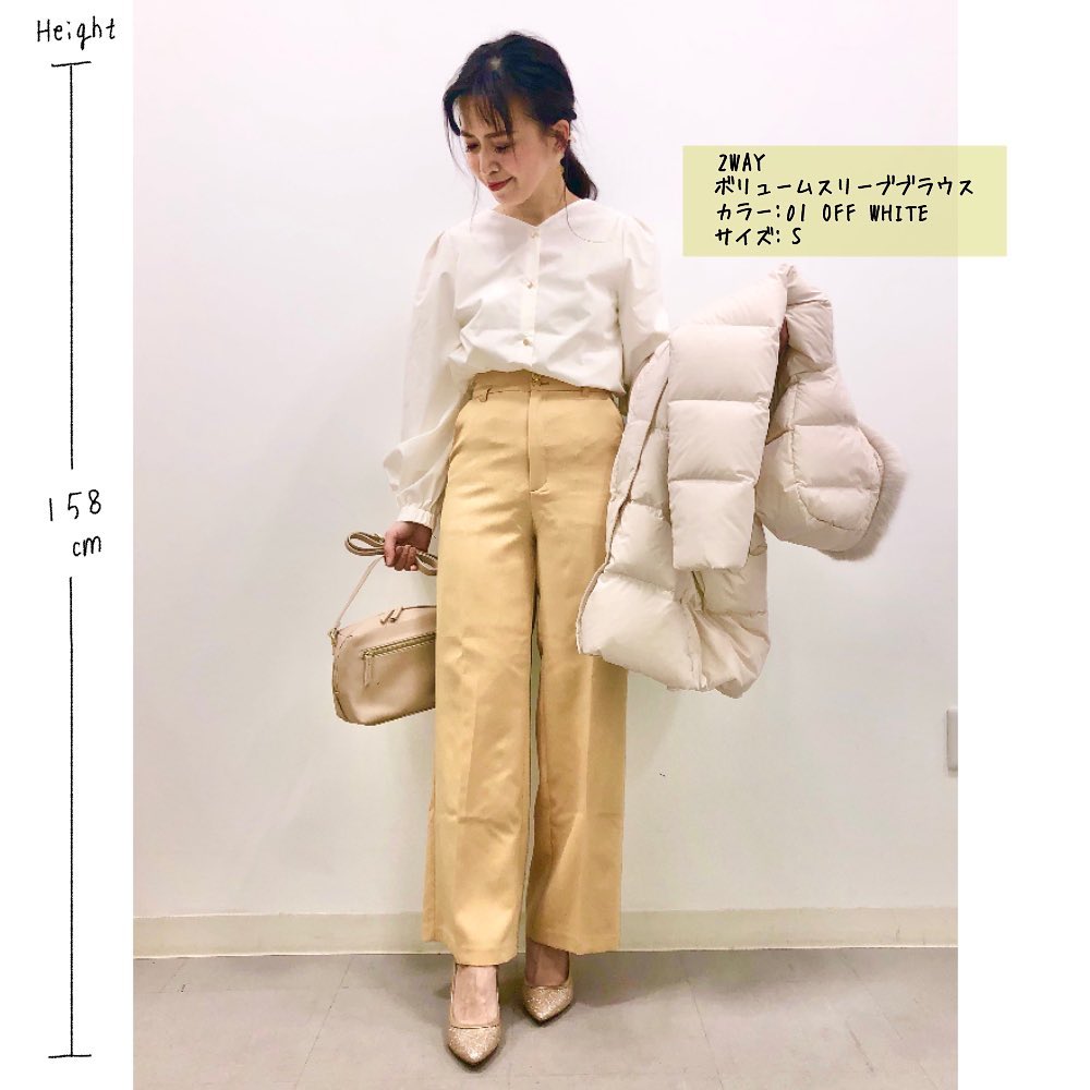 #2WAYフリルネックギャザーブラウス #2WAYボリュームスリーブブラウス #ブラウス #フリル #高見えコーデ #今日のコーデ #今日のコーディネート #きょコ