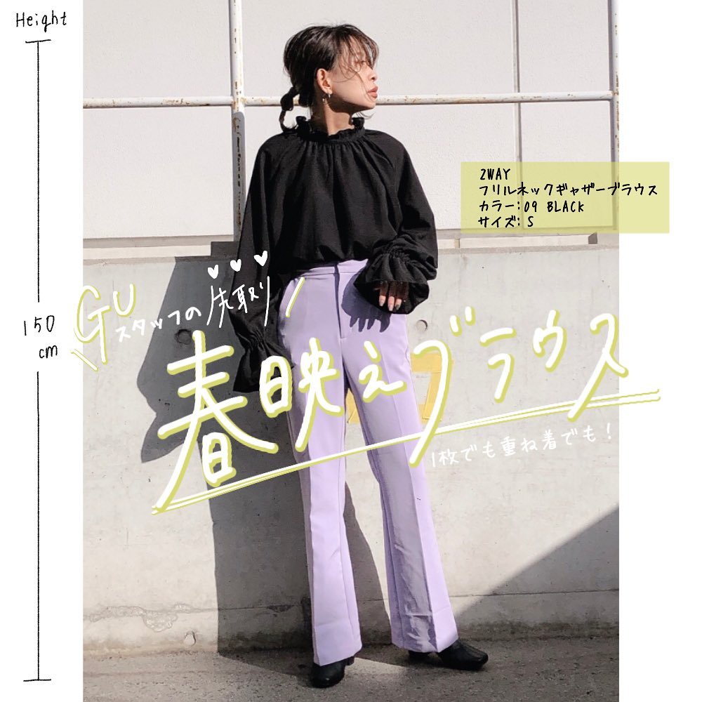 春映えするブラウスに✨GUスタッフも大注目😍フリルやボリュームスリーブで華やかさ抜群❣️きれいめに着こなすのはもちろん😄カジュアルに着こなして、オシャレを満喫するのも、オススメです😘春のスタイリングにシフトチェンジするなら✨ブラウスから始めてみても、良いですね👍 お気に入りは色違いで持っていても使えます(絵文字)ぜひ、チェックしてみてくださいね💁♀️💕