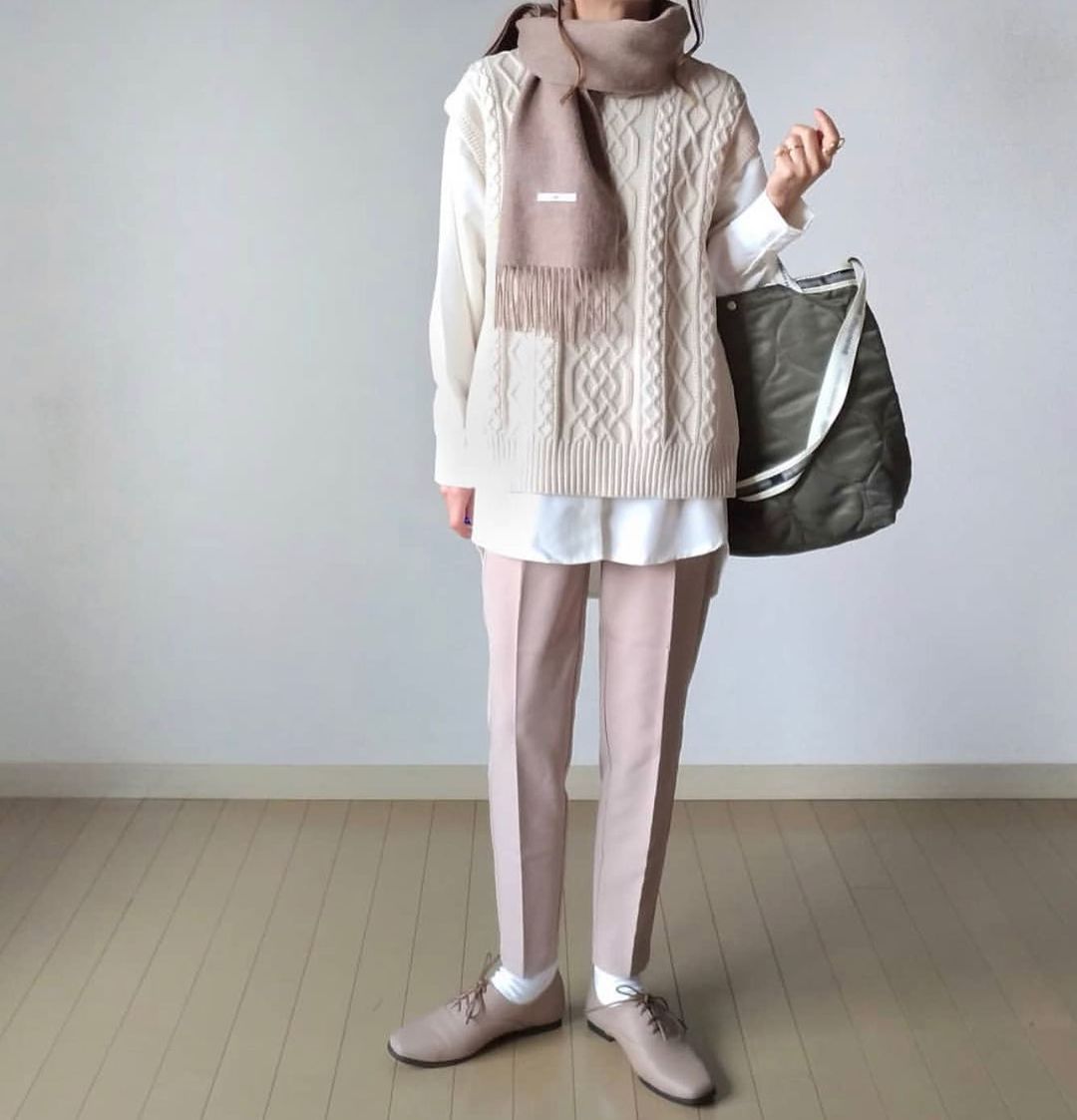 このきれいめシルエットが、見逃せない✨シュッとした着こなしが叶う、テーパードシルエットが絶妙ですね👌ベージュとナチュラルカラーを合わせた、グラデーションも素敵です🥰