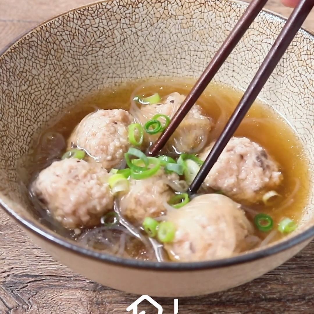 しいたけを細かくみじん切りにして、鶏ひき肉と混ぜ合わせて肉団子にし、中華風のスープに入れました。春雨の食感とジューシーな肉団子がとてもよく合い、おいしいですよ。小腹の空いた時や、夜ごはんの一品にいかがでしょうか。