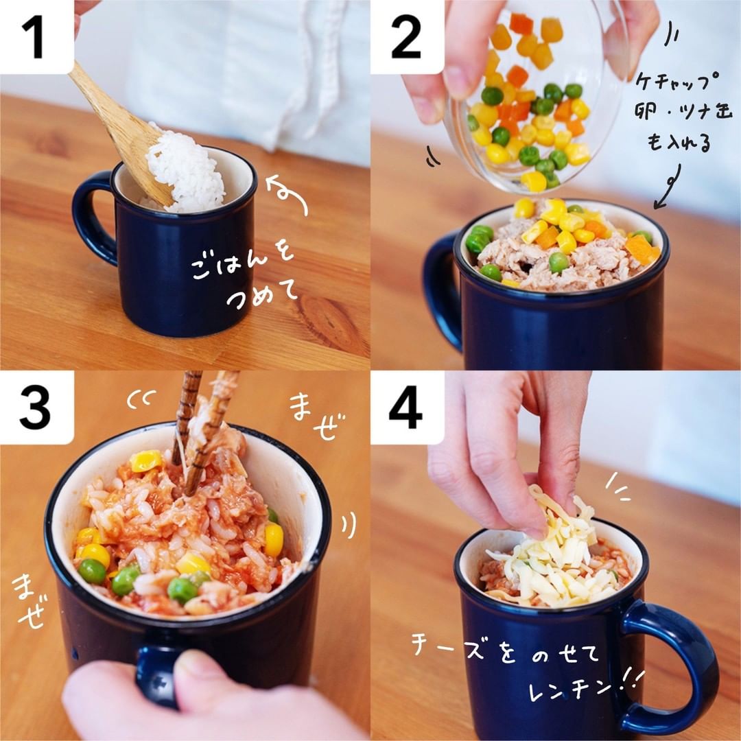 ごはんの量は、マグカップの大きさによって量を調節してください。