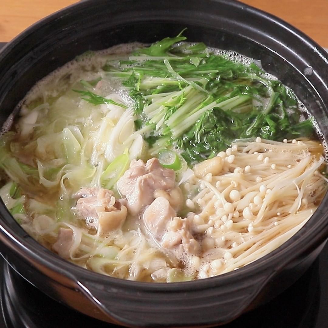 ごま油たっぷり、お箸がとまらないおいしさの無限ごま油鍋のご紹介です。長ねぎや水菜をたっぷり入れてシャキシャキと食感がよく、シンプルで旨味たっぷり、手軽に作れる鍋料理です。ピリッとゆず胡椒を効かせたポン酢でお召し上がりください。