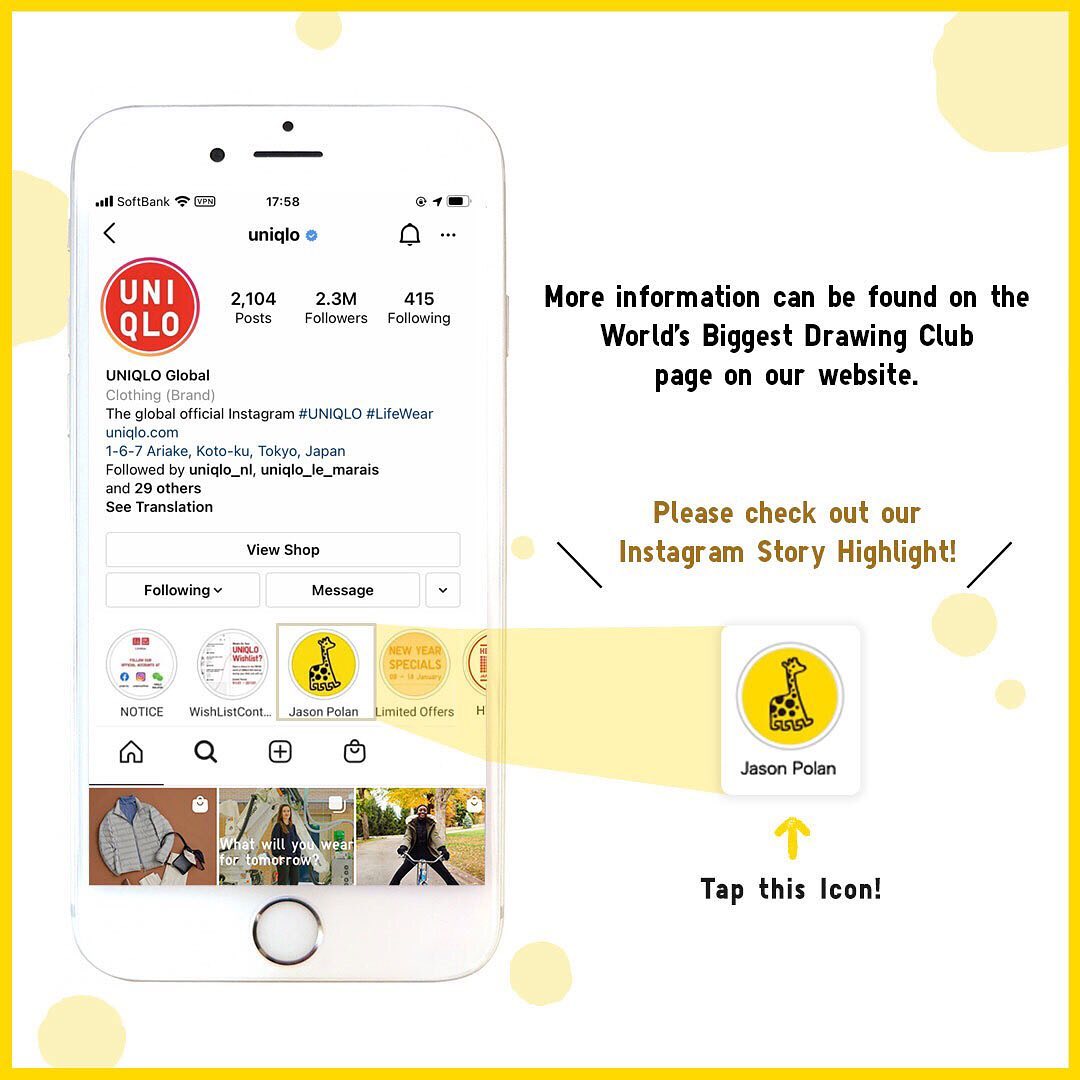 3) Post the artwork on your Instagram with the hashtag #WorldsBiggestDrawingClub. Feel free to tag us on Instagram @uniqlo.