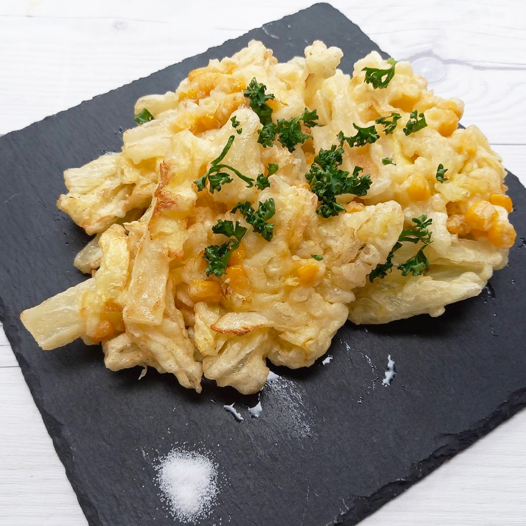 揚げたて最高!白菜とコーンのかき揚げ