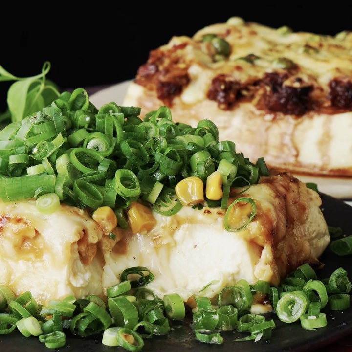 4. オーブン220度で15分(トースターでも可)チーズが溶けて焼き色がついたら器に盛り付ける。麻婆焼き豆腐には山椒・ネギマヨは青ネギと黒胡椒をふりかける。