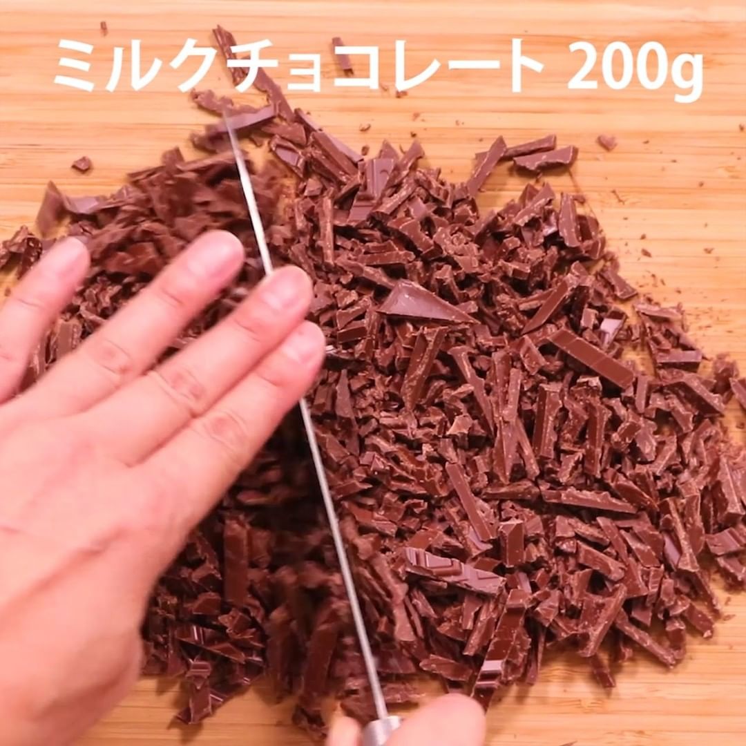 4. ミルクチョコレートを細かく刻み、ボウルに入れます。