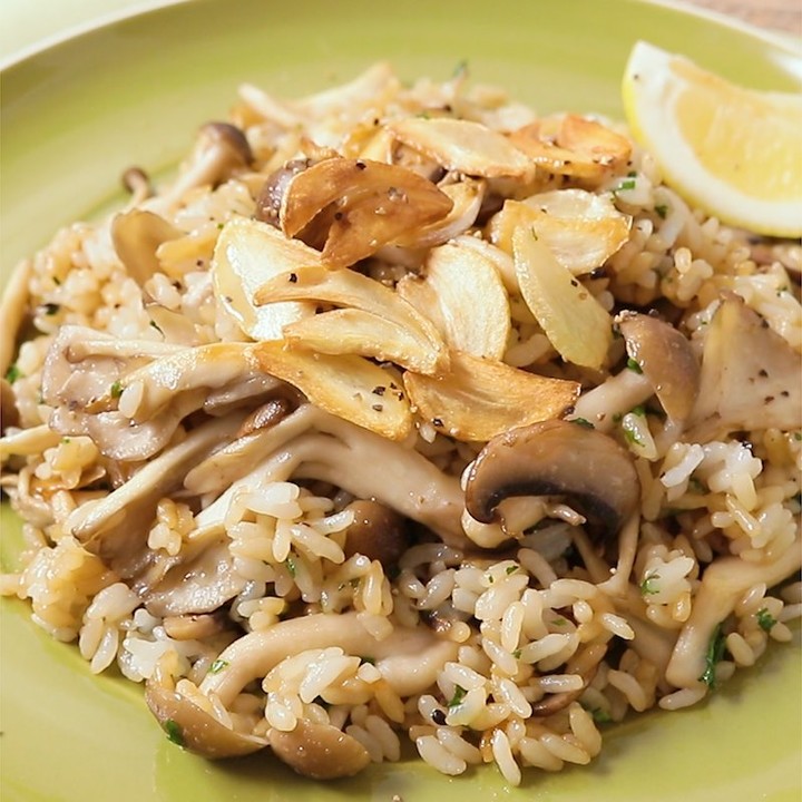 たっぷりのきのこを使った、ガーリックバターライスのレシピの紹介です。3種類のきのこはそれぞれの食感や旨味が違うので、食べ飽きない味わいです。有塩バターを後入れすることで芳醇な風味が最後まで堪能できます。ぜひ、作ってみてくださいね。
