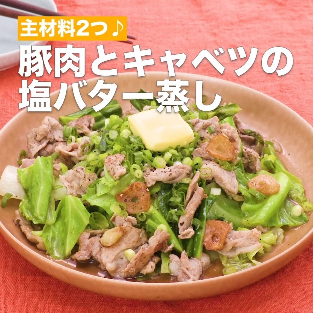⑨<主材料2つ♪豚肉とキャベツの塩バター蒸し>