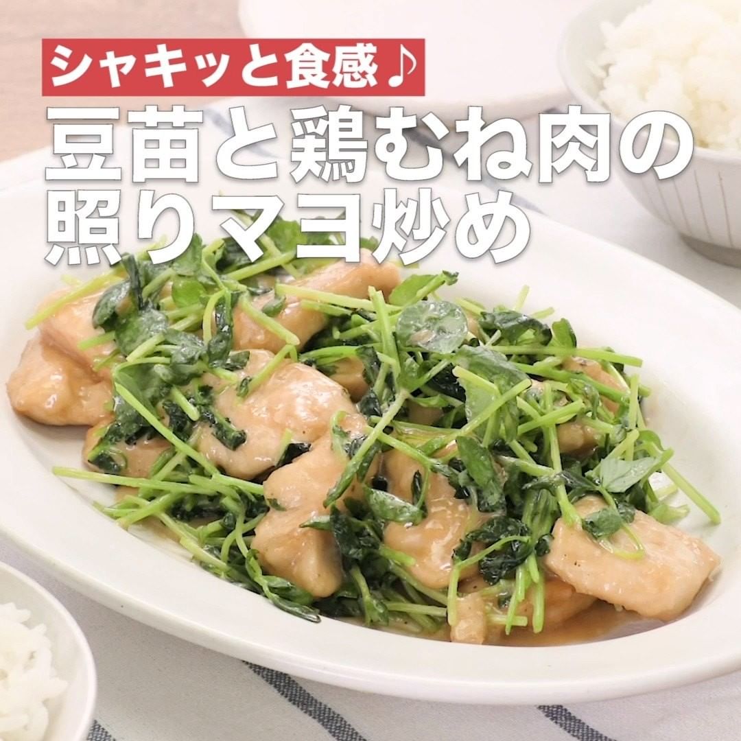 ②<シャキッと食感♪豆苗と鶏むね肉の照りマヨ炒め>