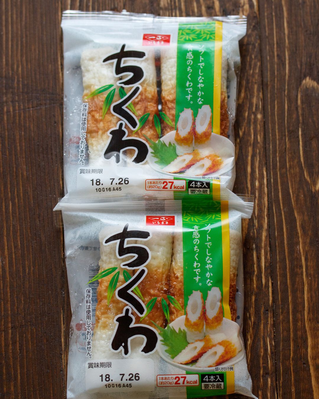 ①ちくわは、斜め薄切りにする。小松菜はサッと塩茹でし、3〜4cm長さのザク切りにする。