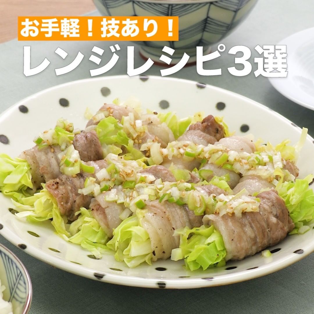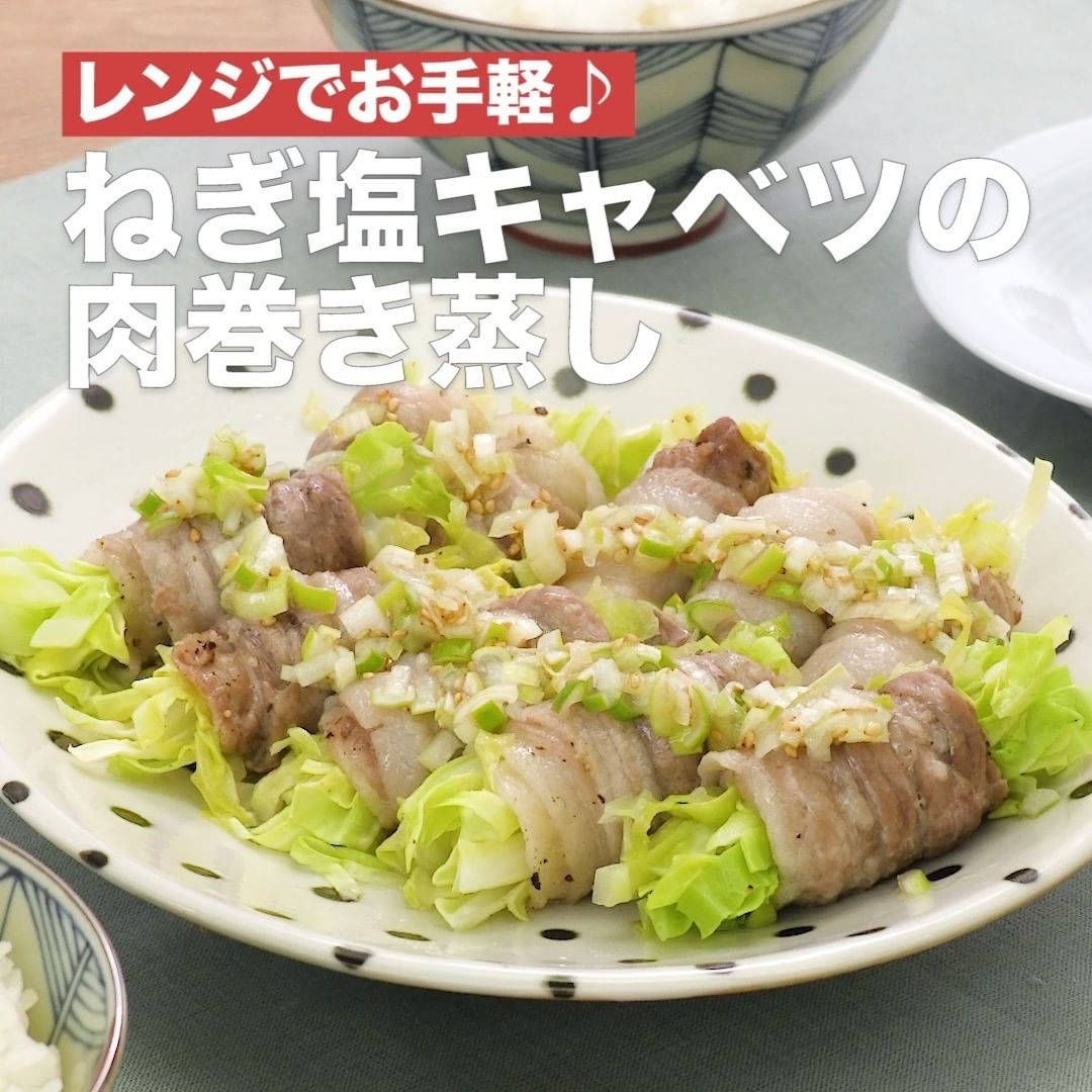 ①<レンジでお手軽♪ねぎ塩キャベツの肉巻き蒸し>