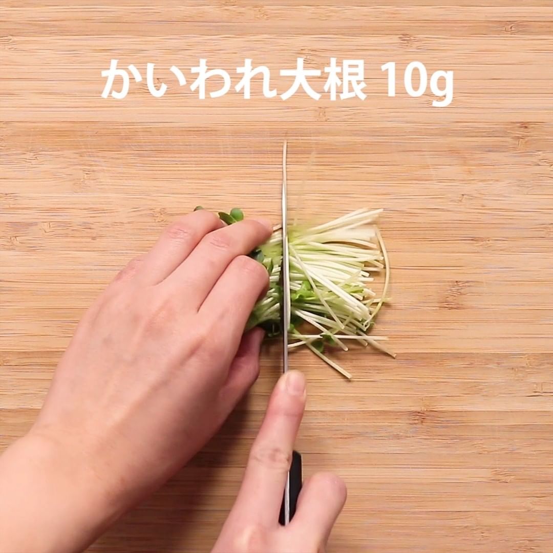 4. かいわれ大根は半分に切ります。