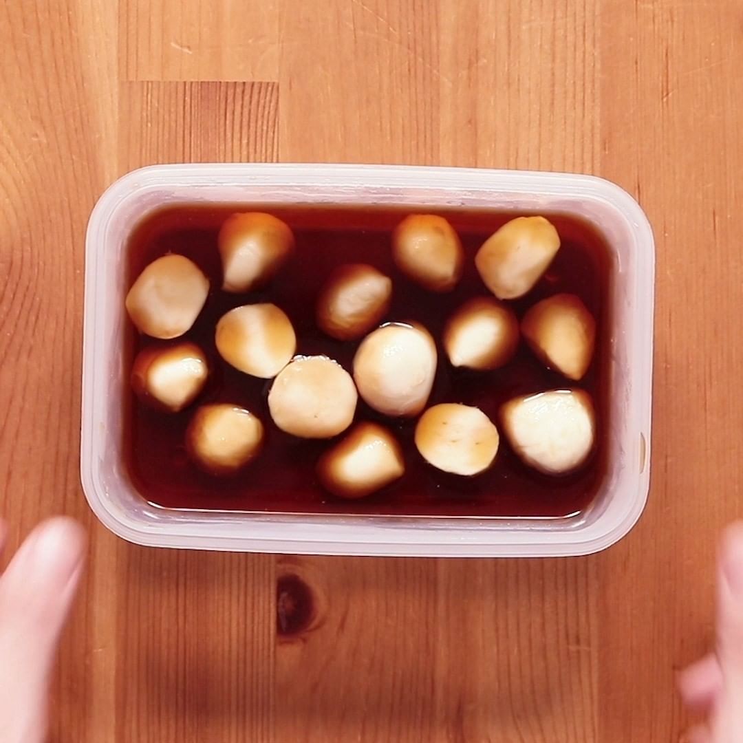 1. 保存容器にプチモッツァレラチーズとめんつゆを入れ、冷蔵庫で2時間以上漬けます。