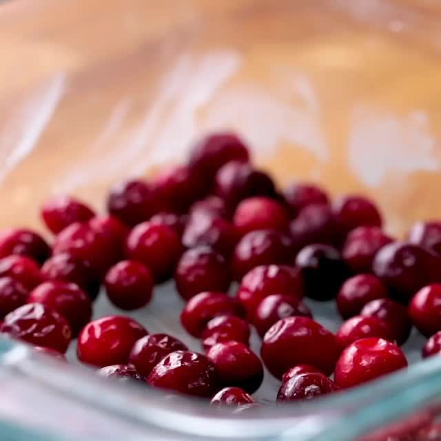 2. 22x22cmの耐熱皿にココナッツオイル大さじ1/2を塗り、クランベリー190gを入れる。