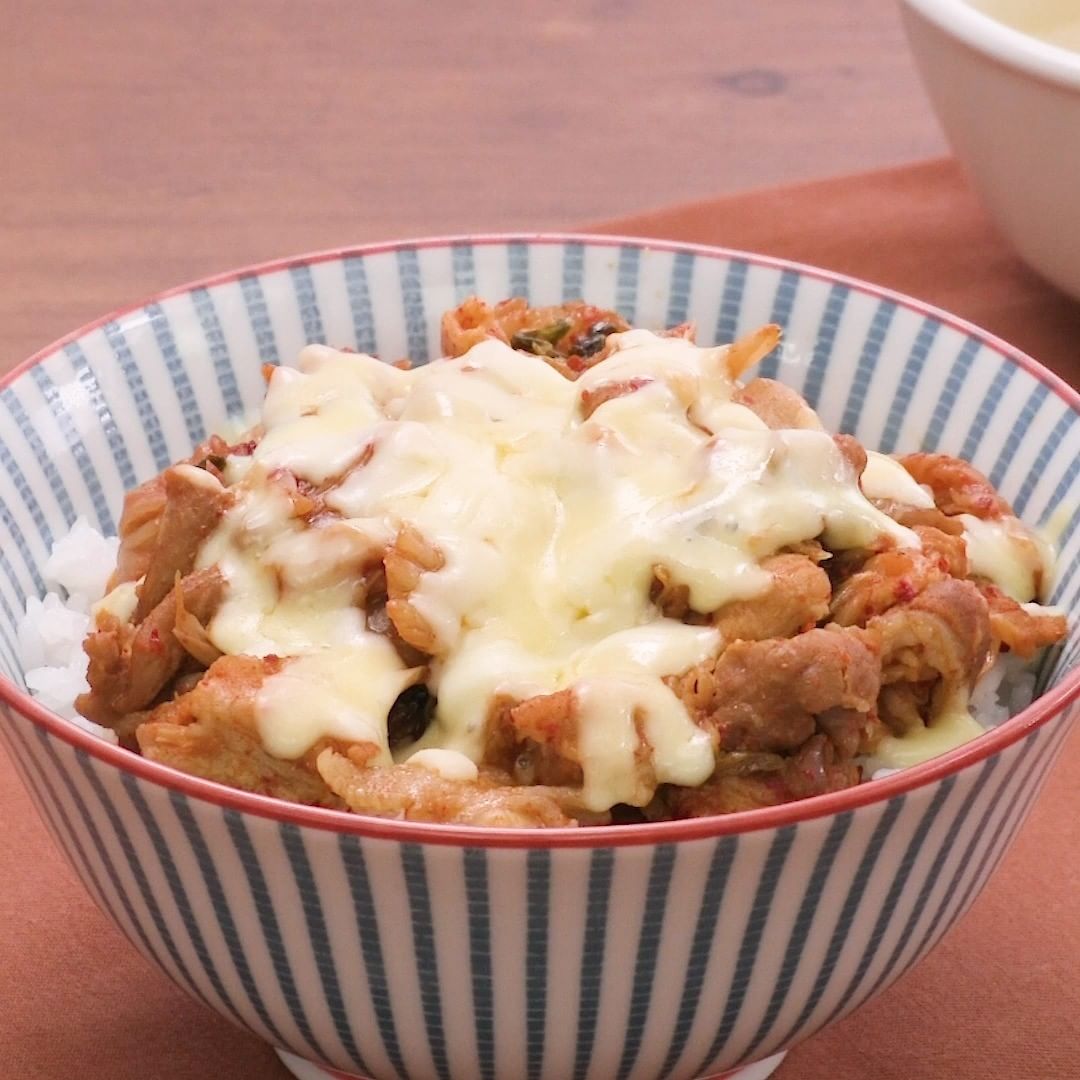料理が面倒な日でもワンボウルでサクッと仕上がる食べ応え抜群などんぶりのご紹介です!豚肉とキムチの相性ぴったりな組み合わせに、まろやかチーズをトッピングしてやみつきなおいしさ♪お腹をすぐ満たしてくれる手間いらずのスピードレシピです。
