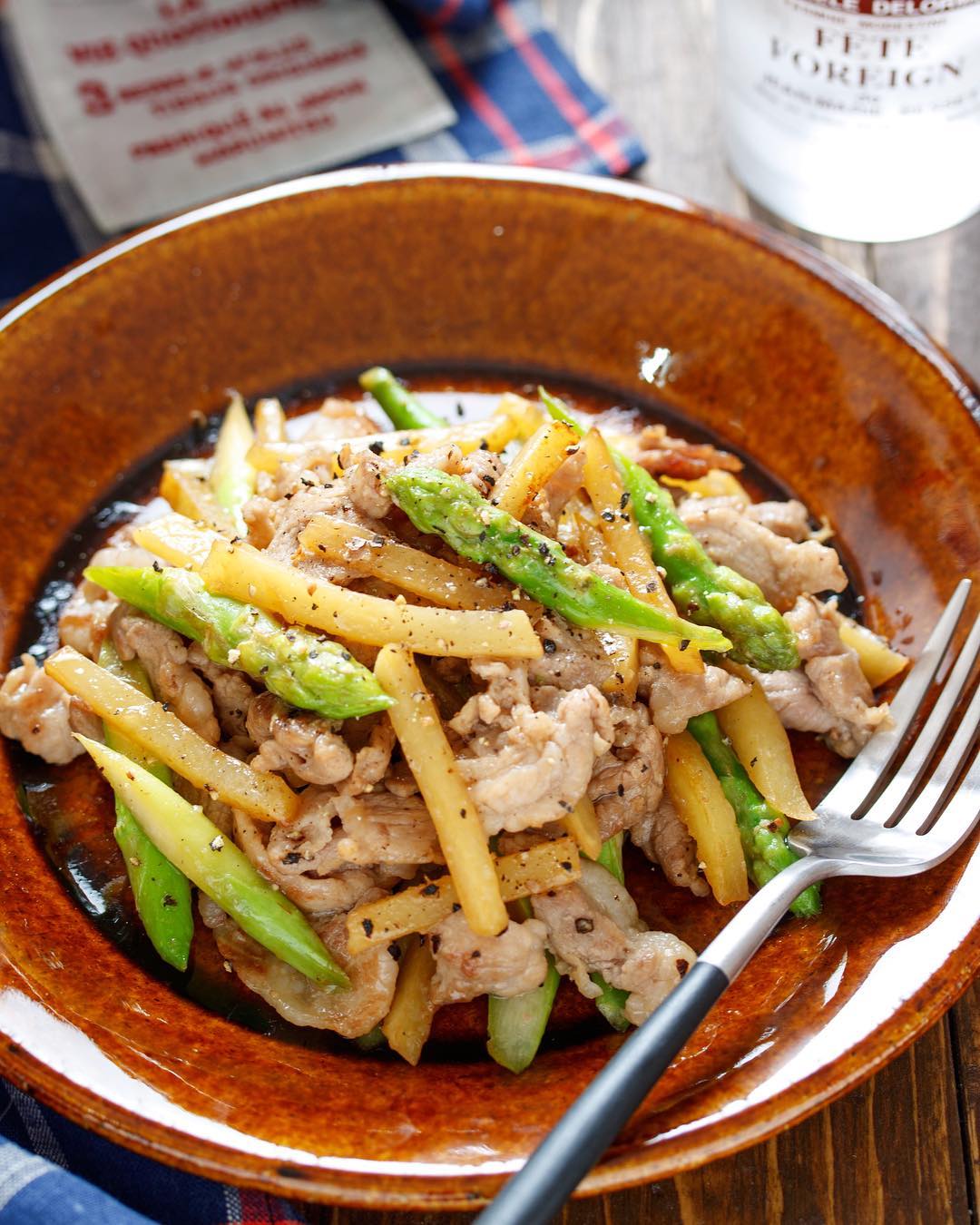 ご質問いただけると助かります(>_<) =============================== * ポイントは 何と言っても”佐賀県産アスパラガス”。 * 豚こまとじゃがいもだけだと なんだか地味に仕上がるんですが * アスパラを加えることで 彩りがアップ! * また、パンチのある味付けに アスパラのフレッシュさと爽やかな甘さ そしてシャキシャキ感が加わり お箸がどんどんすすむ一品に。 * * 今、葉野菜を中心に 野菜が高騰しておりますが こちらはなんと!お財布にも優しい♡ * とっても簡単で とってもオススメですので 機会がありましたら、ぜひ♪ * * 詳しいレシピは 私のホーム(@yuuyuu514)のリンク またはストーリーズのリンクよりご覧下さい♡ * http://yuu-stylish-bar.blog.jp/archives/1072129838.html * ★いいねやコメント、そしてタグ付けしてくださったり みなさま、本当にありがとうございます♡ * お返事やお礼が遅くなりがちですが 全て目を通させて頂いております♪ * #簡単 #節約 #作り置き #お弁当 #クッキングラム #followme #follow #foodpic #food #recipe #cooking #yummy #japanesefood #instafood #foodstagram #Nadia #NadiaArtist #Nadiaレシピ #飯テロ #料理好きな人と繋がりたい #器好き #器 #写真好き #スタジオM #アスパラ #じゃがいも #にんにく醤油