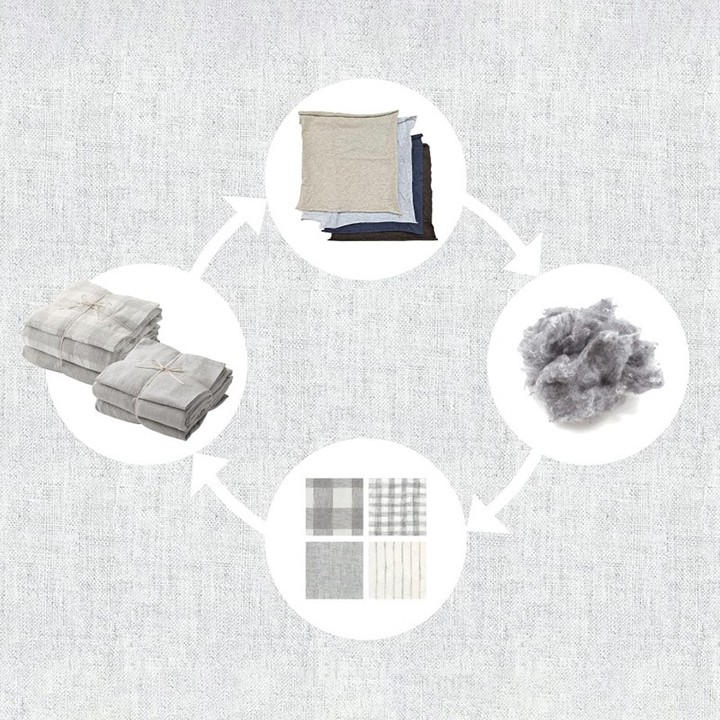 生産工程で出た端切れなどを砕いて繊維の状態に戻し、再び紡績した再生コットンの糸を活用したシリーズです。