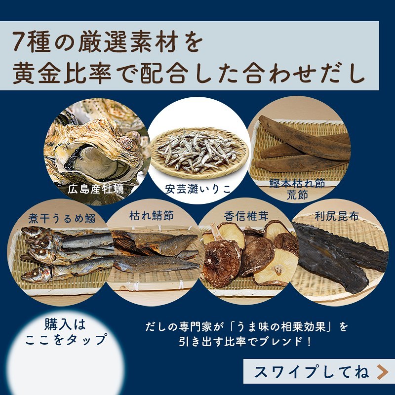 だしの専門家がうま味の相乗効果を引き出す比率でブレンドしたものをギュっと小袋につめました!