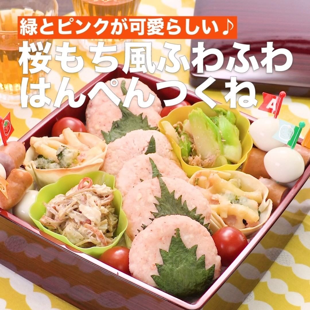 ①<緑とピンクが可愛らしい♪桜もち風ふわふわはんぺんつくね>