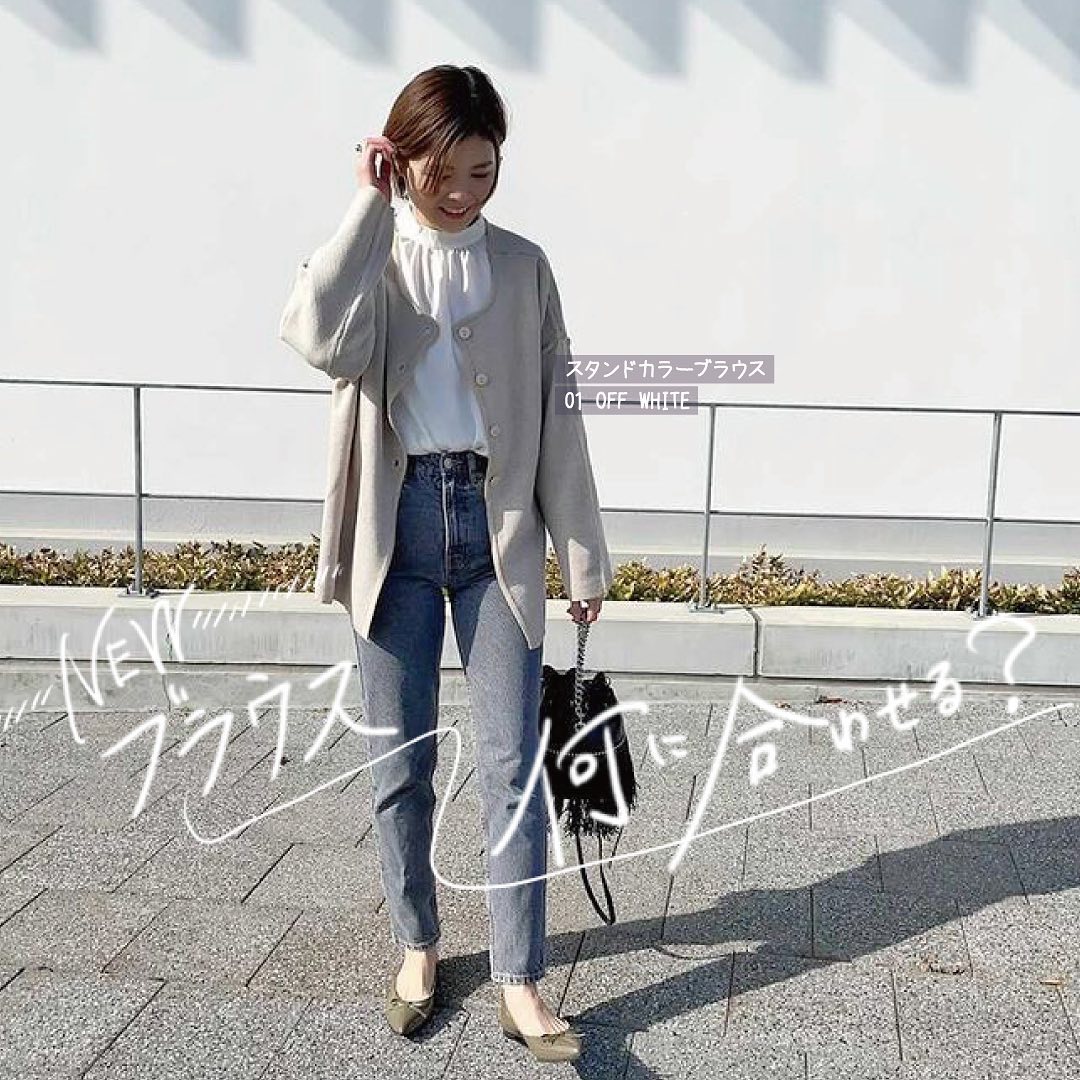 NEWなブラウス✨何に合わせるのが好きですか?🥰定番で使いやすいスタンドカラーブラウスは、甘すぎず、合わせ方が自在👌カジュアルなジーンズや、きれいめなスカートにも合わせやすくて👍大人っぽく仕上がるからおすすめです🙌是非、チェックしてみてくださいね💁♀️💕