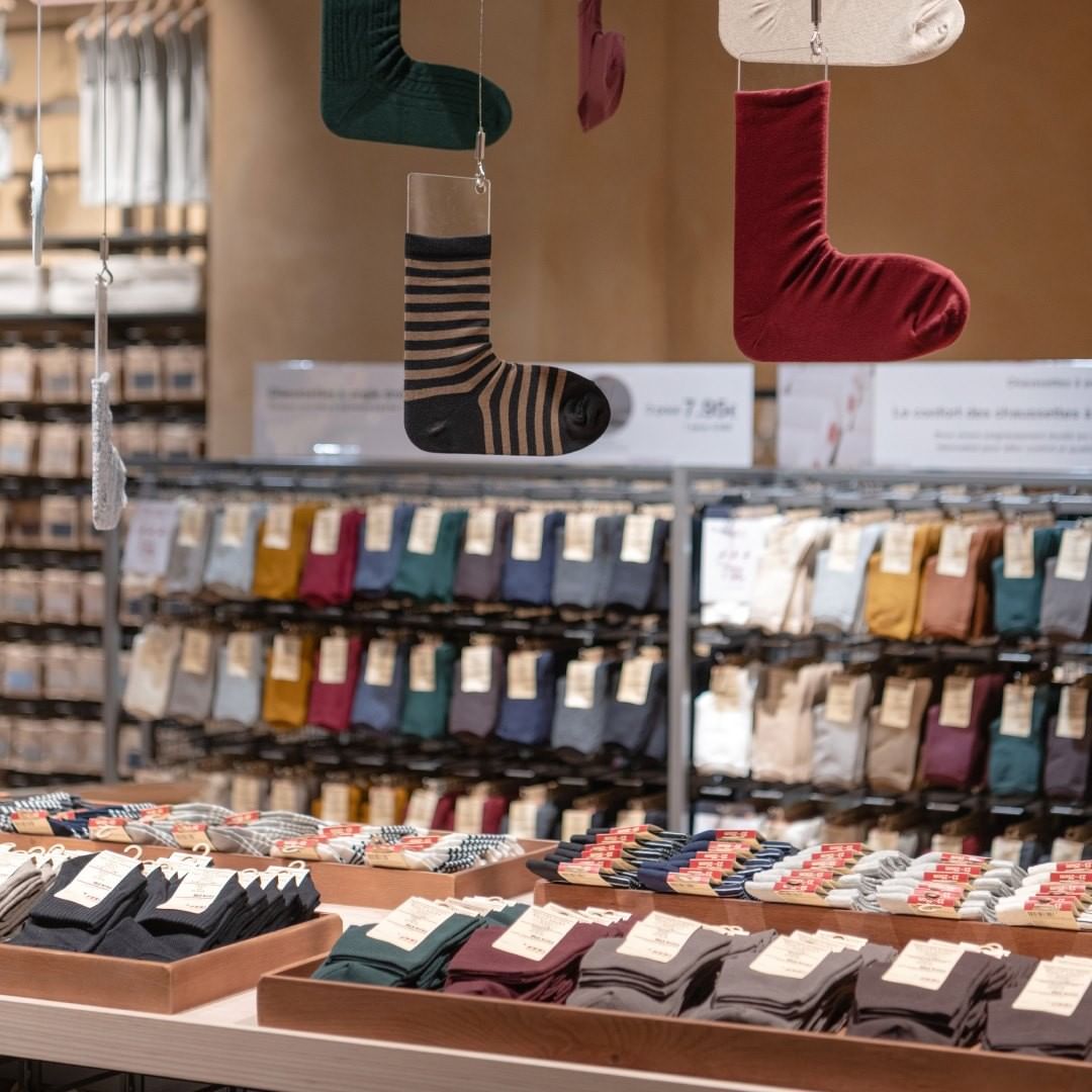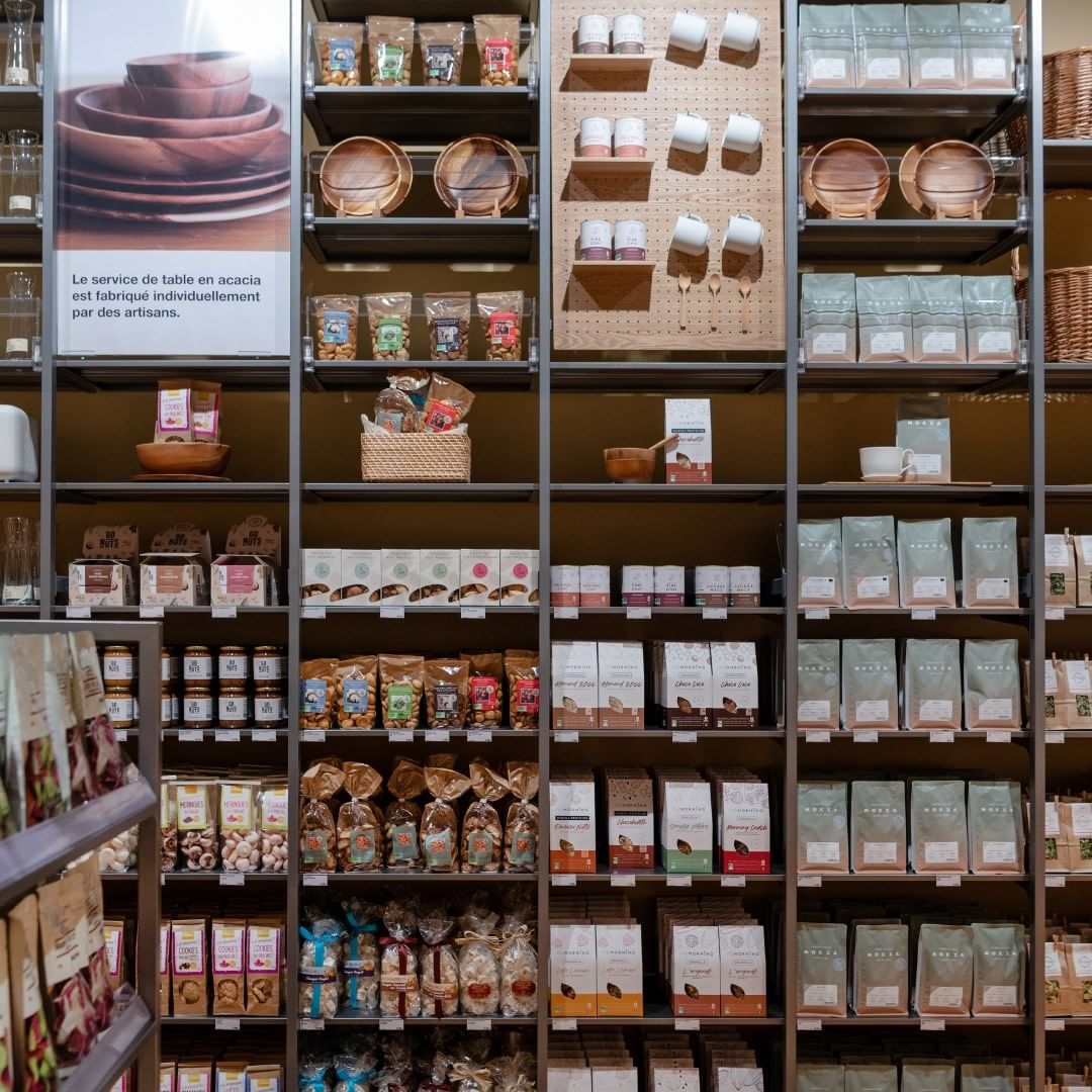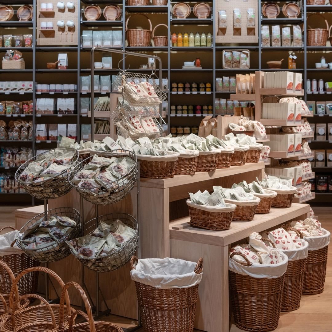 広い店内には、毎日のくらしに必要な食品、衣服・雑貨、ステーショナリー、収納用品、家具など幅広い商品を展開し、フランス国内で初めて取り扱う商品もあります。また、「ローカルフード」コーナーでは、この地域で生産した食品Mokxa, Le Père Craquant, Go Nuts, Bissardonなどを販売しています。