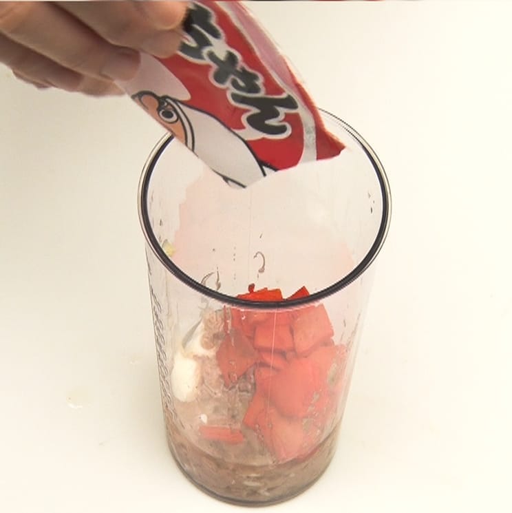 ①マヨネーズ(大さじ2)ツナ缶(1缶)カットよっちゃん(2袋)をフードプロセッサーで滑らかになるまで混ぜ、トンナートソースを作る
